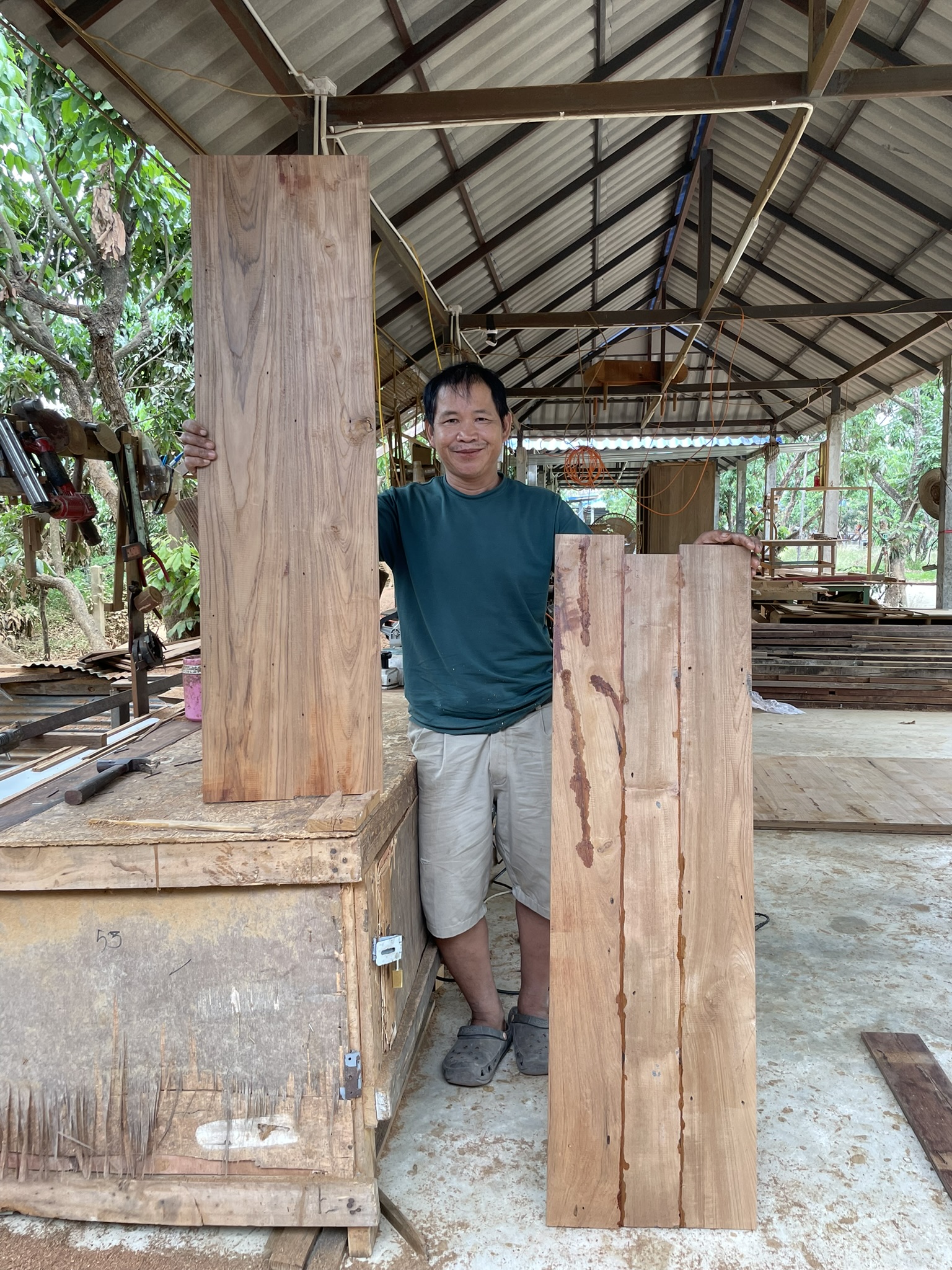 เราคัดสรรวัสดุจากไม้สักเก่า เพื่อใช้ในการประกอบ เป็นตู้ไม้สักโบราณ เนื่องจากไม้สักเก่ามีลวดลายที่สวยงาม โดดเด่น อีกทั้ง ยังมีความแข็งแรงทนทาน สามารถรองรับ น้ำหนักของสิ่งที่อยู่ในตู้ได้ และเมื่อนำไปผสมกับวัสดุอื่น ๆ อย่างเช่น กระจก ก็ยิ่งจะทำให้ ตู้ไม้สัก ดูมีความหรูหรามากยิ่งขึ้น