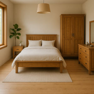 ห้องนอนเป็นพื้นที่ส่วนตัวที่ต้องการความสงบและผ่อนคลาย เตียงไม้สัก และ เฟอร์นิเจอร์ห้องนอนไม้สัก จะช่วยสร้างบรรยากาศที่เหมาะแก่การพักผ่อน